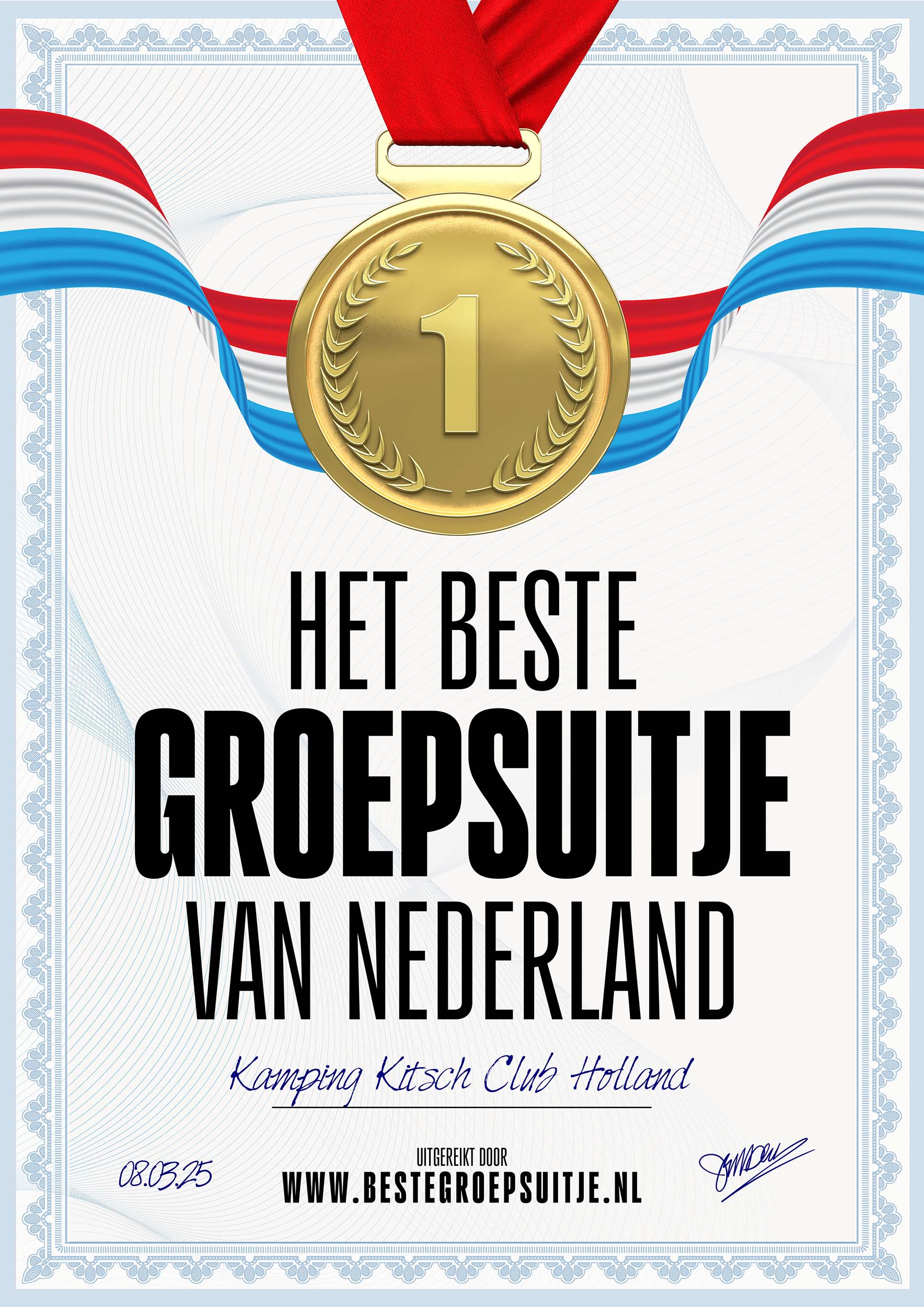Voor het zesde jaar op rij gaat onze prestigieuze Beste Groepsuitje Award naar het Brabantse festival Kamping Kitsch Club. Woordvoerder Huub laat weten verrast te zijn. “Concurreren met De Efteling is toch moeilijk, maar zeer mooi dat we onze titel weten te behouden”, zegt het uithangbord van ‘Het Grootste Ordinairste Verkleedfeest van de Wereld’.