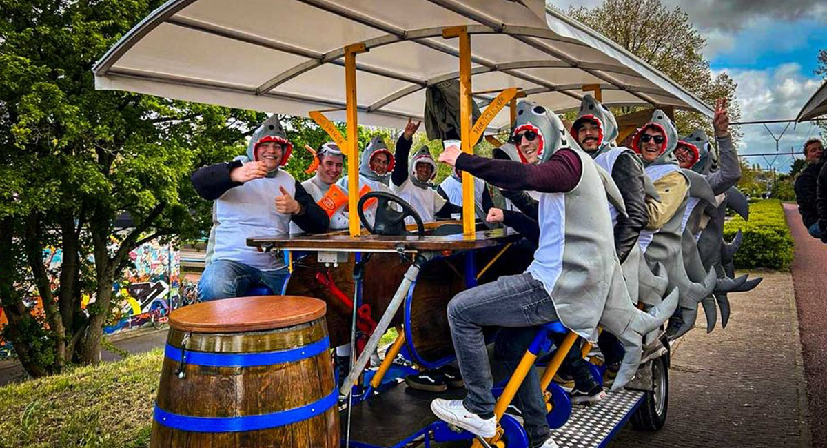 Vrienden fietsen vrolijk rond © bierfiets.eu